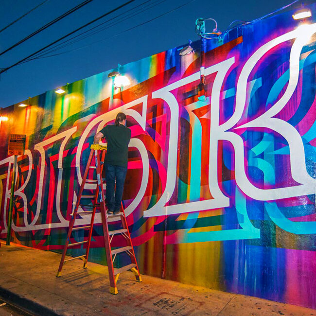 Kelly Graval better known by his artist name RISK will embrace the fan engagement style with his 40-foot mural in neon font providing a backdrop for football fans that have come from near and far to celebrate Super Bowl LIV at the Super Bowl LIVE festival at Bayfront Park. Risk was one of the first artists to exhibit graffiti and street art in galleries. In the course of his nearly 30-year career, RISK has become one of the most influential figures for subsequent generations of graffiti artists and is considered one of the first artists to have painted on freight trains, as well as a pioneer of “painting in the heavens” — a graffiti term referring to highly elevated surfaces like billboards, rooftops, and overpasses.