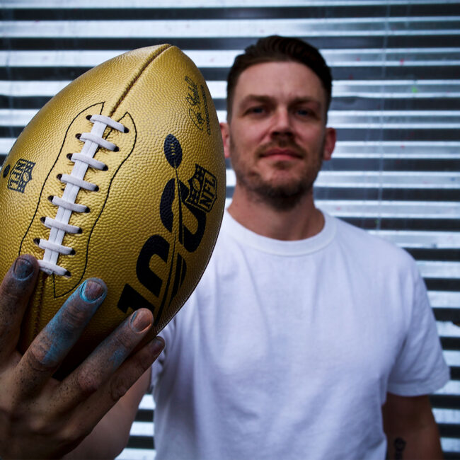 Artwork will not only be woven through the stadium and programming — Joe Iurato’s individual pieces will be featured on the ground throughout the NFL’s footprint in Miami, creating an organic scavenger hunt of 10 of the biggest moments in NFL history from the last century. Fans will be able to use the ONEPASS app to hunt for moments like the 1920 first owners meeting, the 1972 Dolphins Perfect Season and the 2008 Helmet Catch. Joe Iurato is a multidisciplinary artist whose works are built on a foundation of stencils and aerosol. While Iurato’s murals have adorned neighborhoods along the east coast of the United States for years, he’s more recently have become noted for the unique placement and photography of miniature painted wood cut-outs in public spaces. Utilizing the outdoor environment to create site-specific installations, Iurato creates windows into a narrative formed by personal experiences.