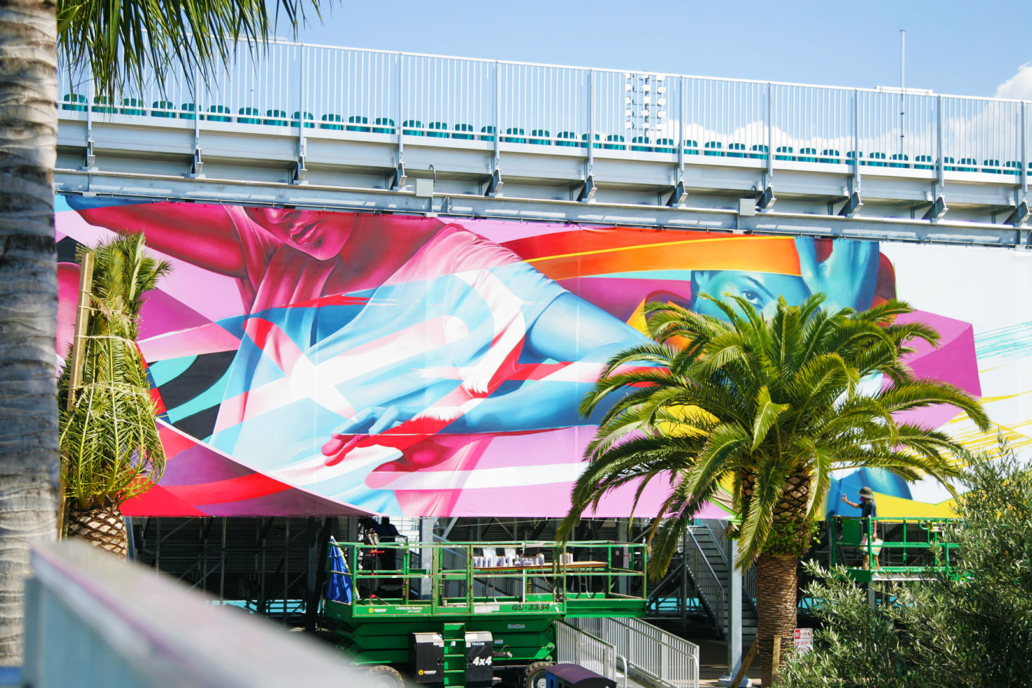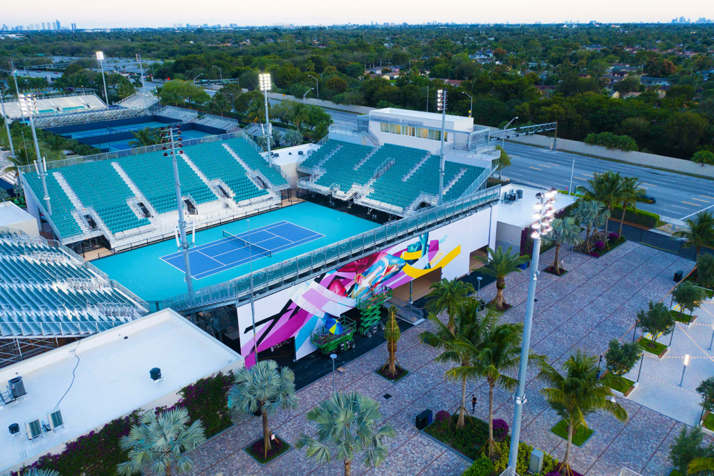 The Miami Open, through our partnership with Hard Rock Stadium, tasked us to re-envision what tennis courts should look like in a global entertainment venue. In our quest to elevate the setting, we created canvases to adorn the traditional tennis grandstands and our artists flawlessly executed a vision admired by sports and art fans alike.