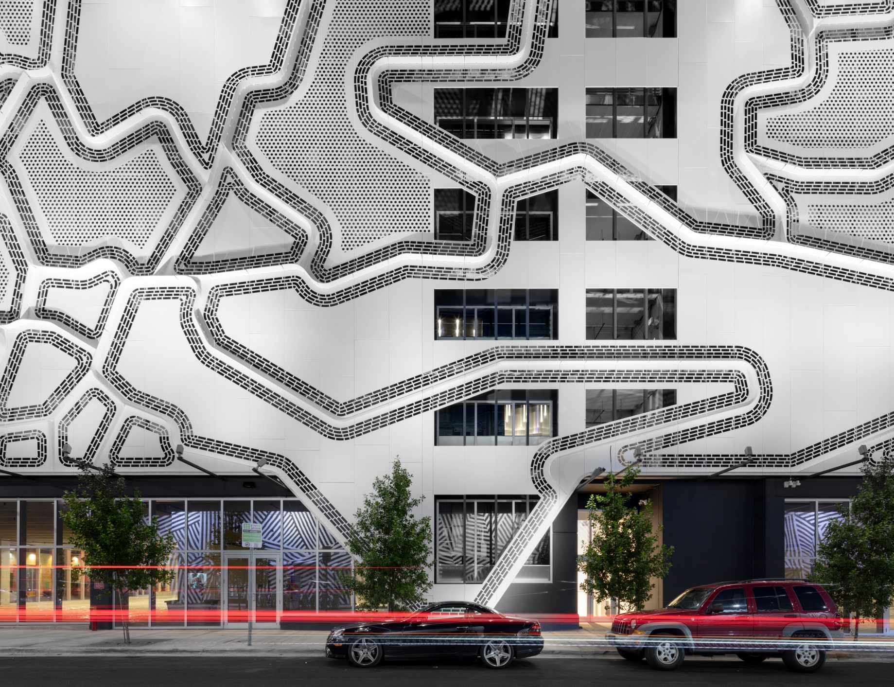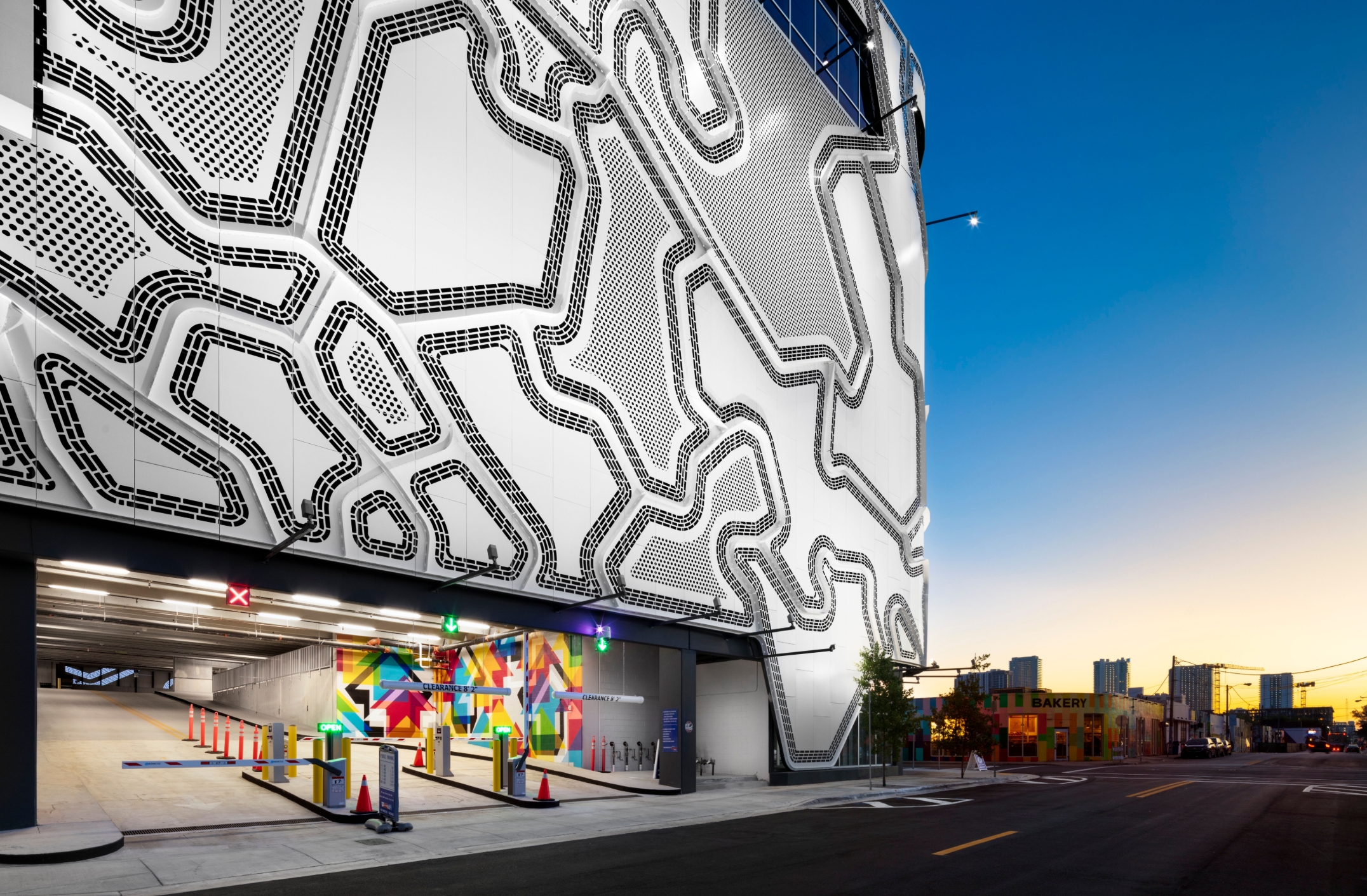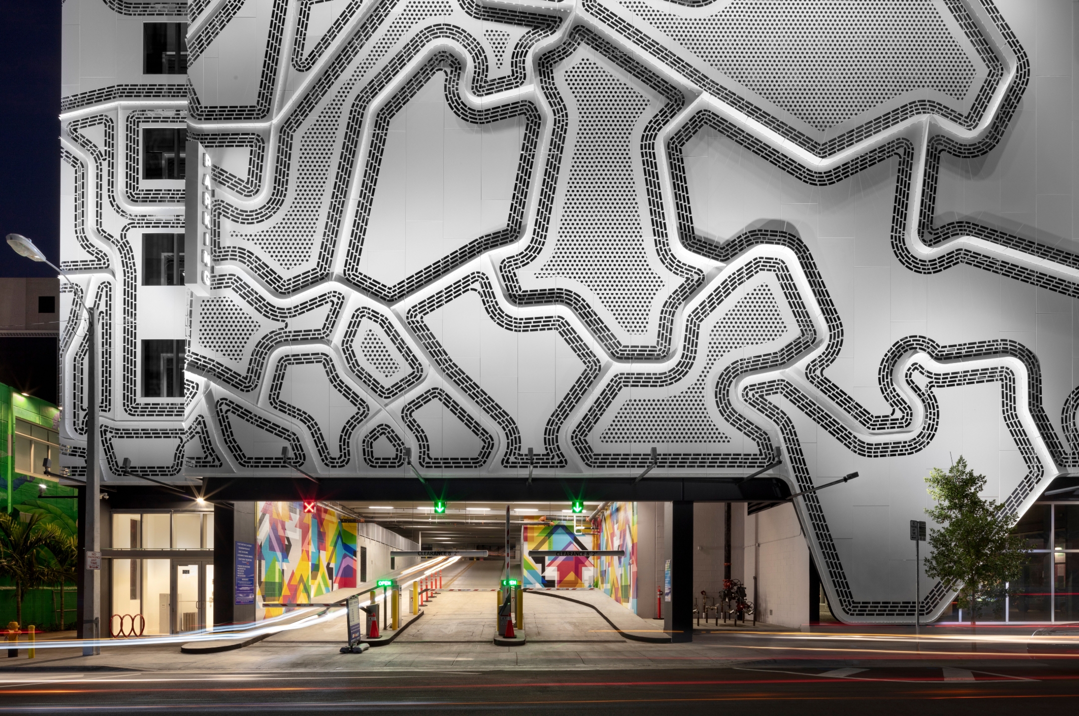 To meet this need, GGA commissioned Tavar Zawacki and coordinated the production of the over 1,638 sq ft entrance mural as well as the designs of the wayfinding signage throughout the structure.